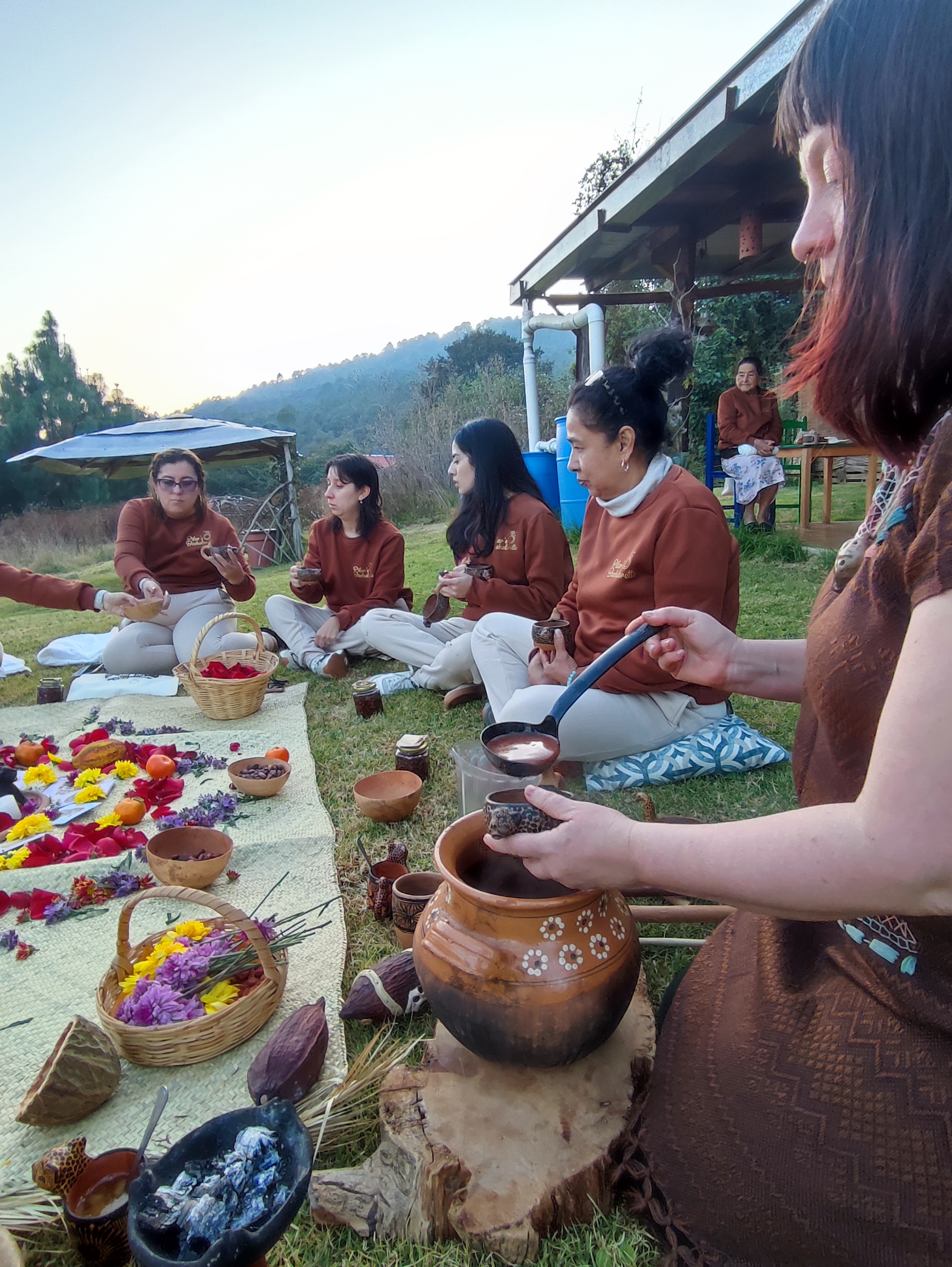 As the cacao gently activates warmth and openness, the group enters a space of sisterhood. Gratitude is shared. Words of support are spoken. Future hopes are voiced.